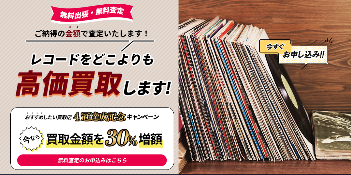 レコードに精通した査定士が在籍し、ジャケットの破れや盤面の傷、帯の欠品があるレコードでも査定可能で、「価値がないだろう」と諦める前に相談できる点が大きな魅力です。